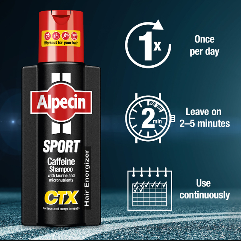 Usage Instructions: Apply a small amount to wet hair, massage into a lather, and leave on for 2 minutes to allow the caffeine complex to penetrate. Rinse thoroughly. For best results, follow with Alpecin Sport Caffeine Liquid for enhanced scalp care.