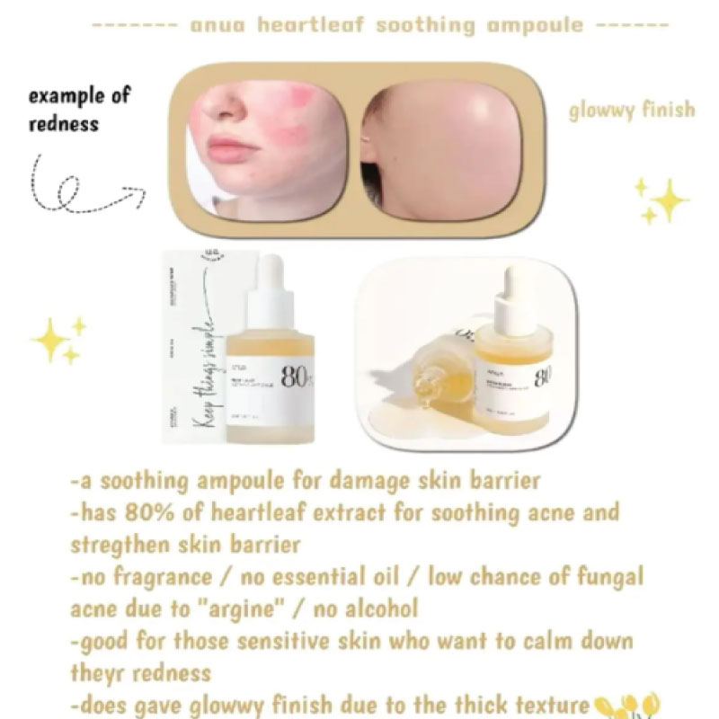 - Calming skin troubles: Soothing Ampoule with Heartleaf Extract to the highest level, formulated to soothe, hydrate, and take care of your irritated skin