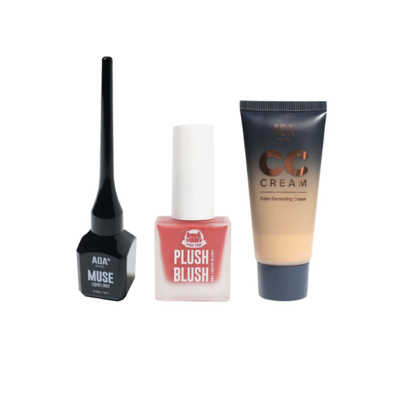 Usage Instructions: Apply the AOA Muse Liquid Liner along the lash line for precise definition. Blend Gel Liquid Blush onto cheeks using fingertips or a brush for a healthy glow. Apply CC Cream evenly over cleansed skin for smooth, even coverage.