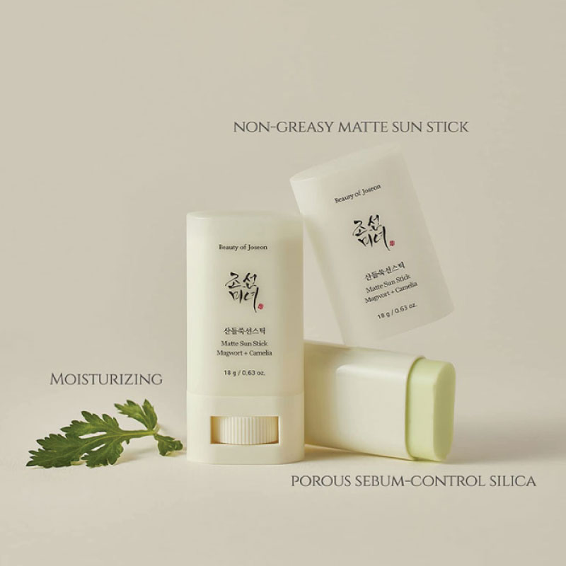 The Beauty of Joseon Matte Sun Stick: Mugwort + Camelia is the ideal sunstick to reapply every 2-3 hours. The stick contains sebum-controlling silica powder which gives a mattifying effect without a sticky film. artemisia capillaris and green tea extracts ensure smooth, hydrated and cared-for skin.