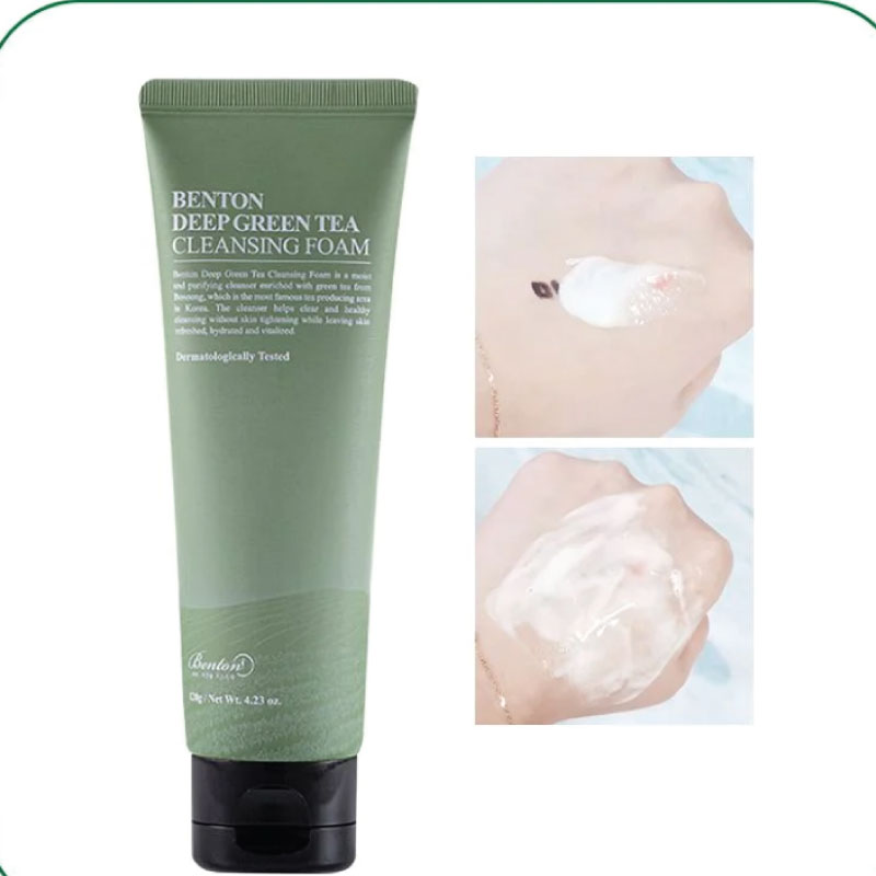 Apply a small amount of Benton Deep Green Tea Cleansing Foam to damp skin. Gently massage in circular motions to create a rich lather. Rinse thoroughly with lukewarm water. For best results, use twice daily, in the morning and evening, as part of your skincare routine.