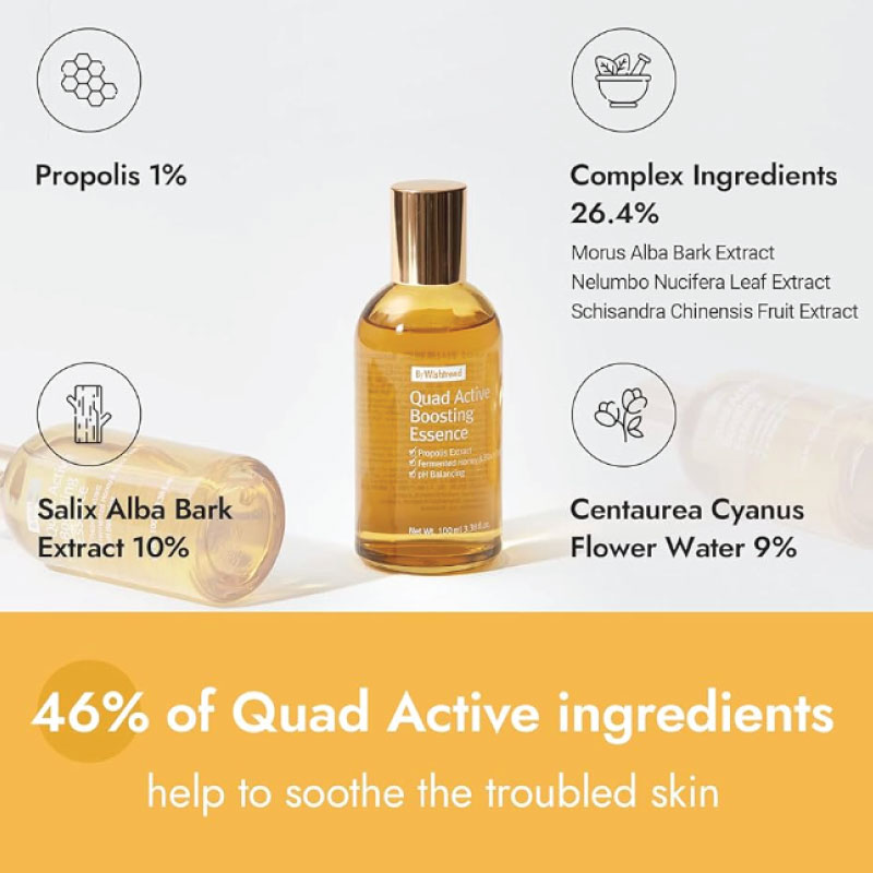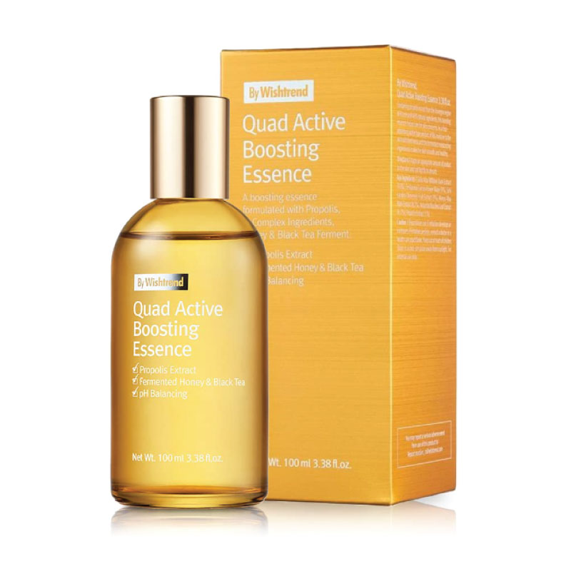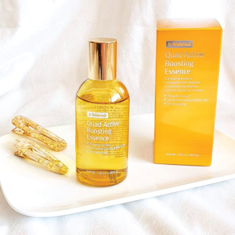 This essence is recommended as a serum booster that contains ‘Quad Active’ Ingredients: 3 Complex Ingredients (Morus Alba Bark Extract, Nelumbo Nucifera Leaf Extract, Schisandra Chinensis Fruit Extract), Salix Alba (Willow) Bark Extract, Centaurea Cyanus Flower Water, and Propolis. These ingredients are widely known to help with anti-inflammatory, anti-pollution, and anti-bacterial effects to maintain your skin to stay healthy and lively. Also, with supporting ingredients Black Tea and Honey, it provides moisturizing effects to the skin. Recommended using this essence in between your toner and serum step!