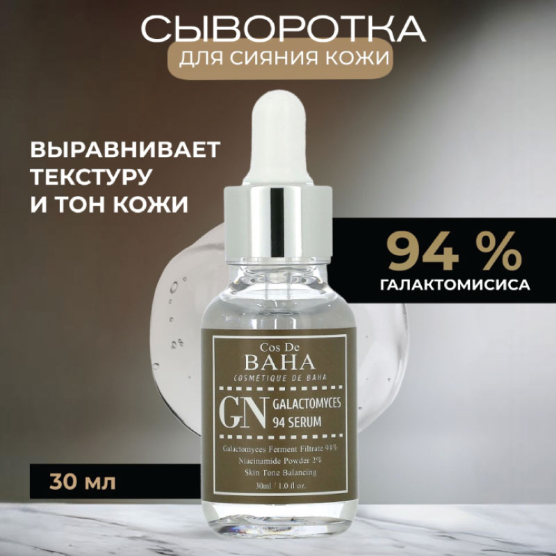 Transform your skincare routine with the Cos De BAHA 94% Galactomyces Serum 30ml (GN), a powerhouse formula designed to rejuvenate and brighten your skin. This serum is infused with 94% Galactomyces Ferment Filtrate, a revered ingredient in Korean skincare known for its exceptional ability to enhance skin texture, improve elasticity, and impart a youthful glow.
