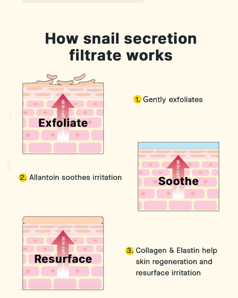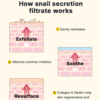- Skin Repair and Regeneration: Snail mucin is known for its healing properties. It accelerates the skin’s natural repair processes, helping to fade scars, reduce hyperpigmentation, and improve overall skin tone and texture.