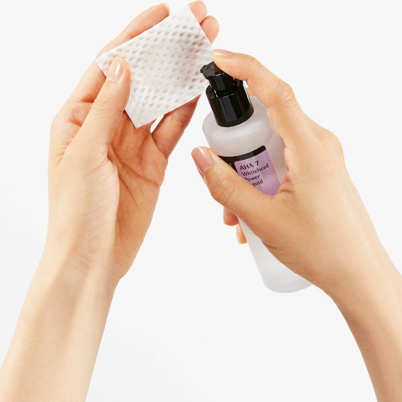 - Start with Clean Skin: After cleansing, use a cotton pad to apply the AHA 7 Whitehead Power Liquid to your face, avoiding the eye area.