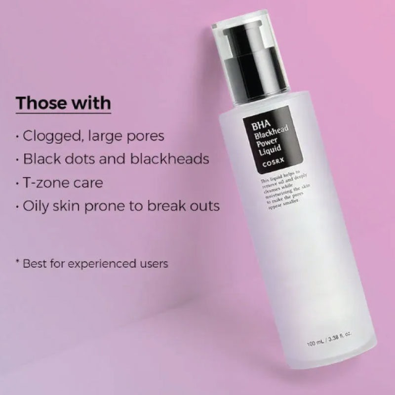 COSRX BHA Blackhead Power Liquid is a highly effective chemical exfoliator that refines the look of enlarged pores and leaves skin brighter