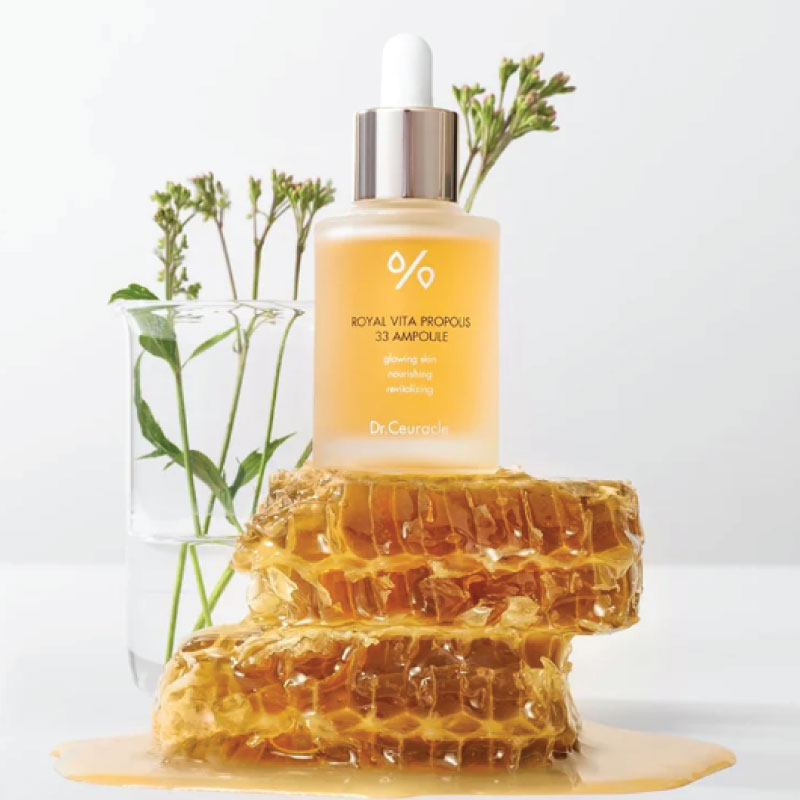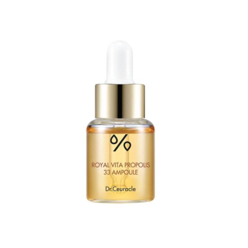 Royal Vita Propolis 33 Ampoule is a multi-tasking luster-creating serum ampoule that is deeply nourishing and moisturizing. It contains 33% pure propolis that is naturally repairing, royal jelly extract that protects the skin from free radicals and seaweed extract that illuminates pigmentations. It also soothes the skin with panthenol and niacinamide reduces fine lines and uneven skin tone. Suitable for all skin types, especially sensitive and acne prone skin.