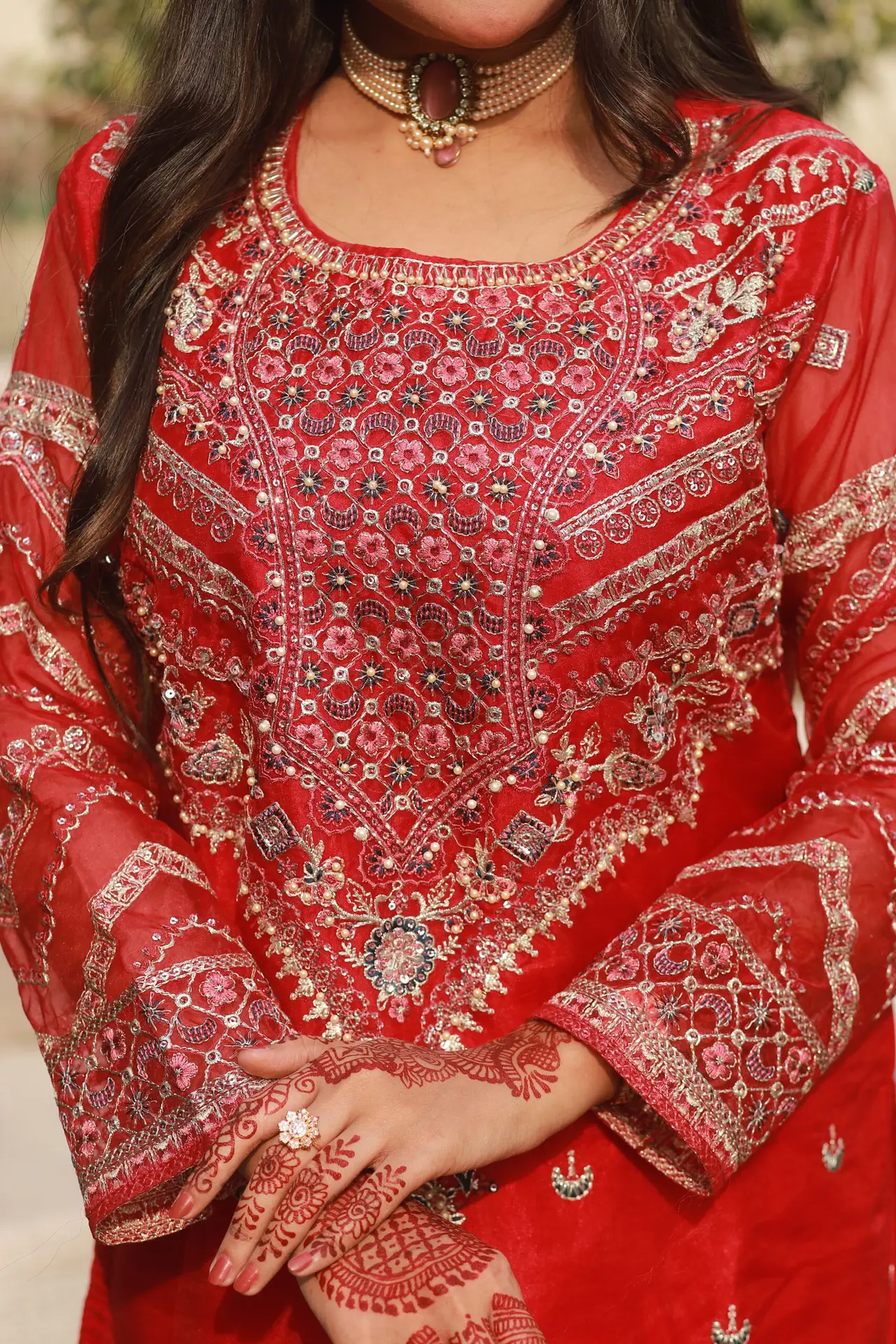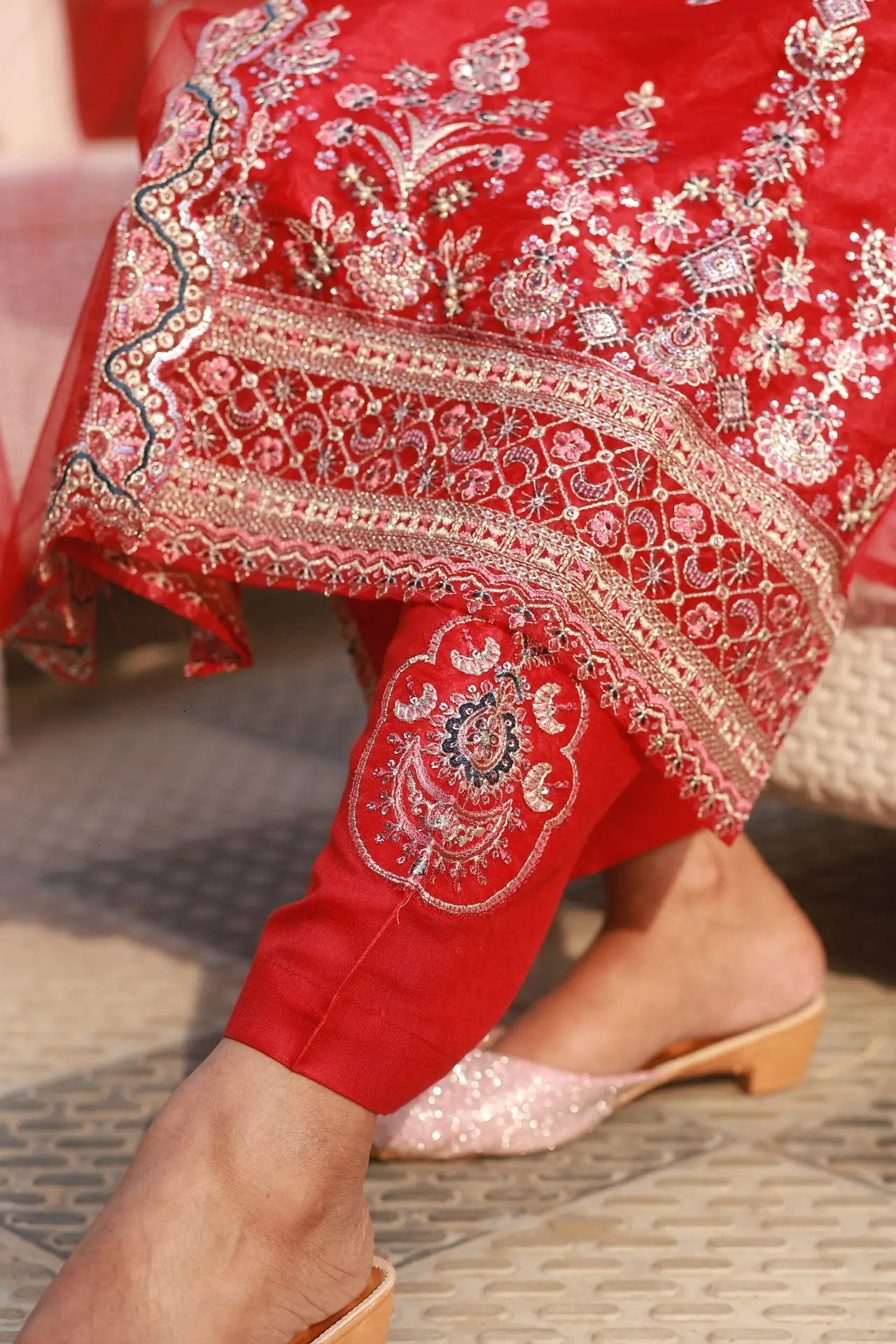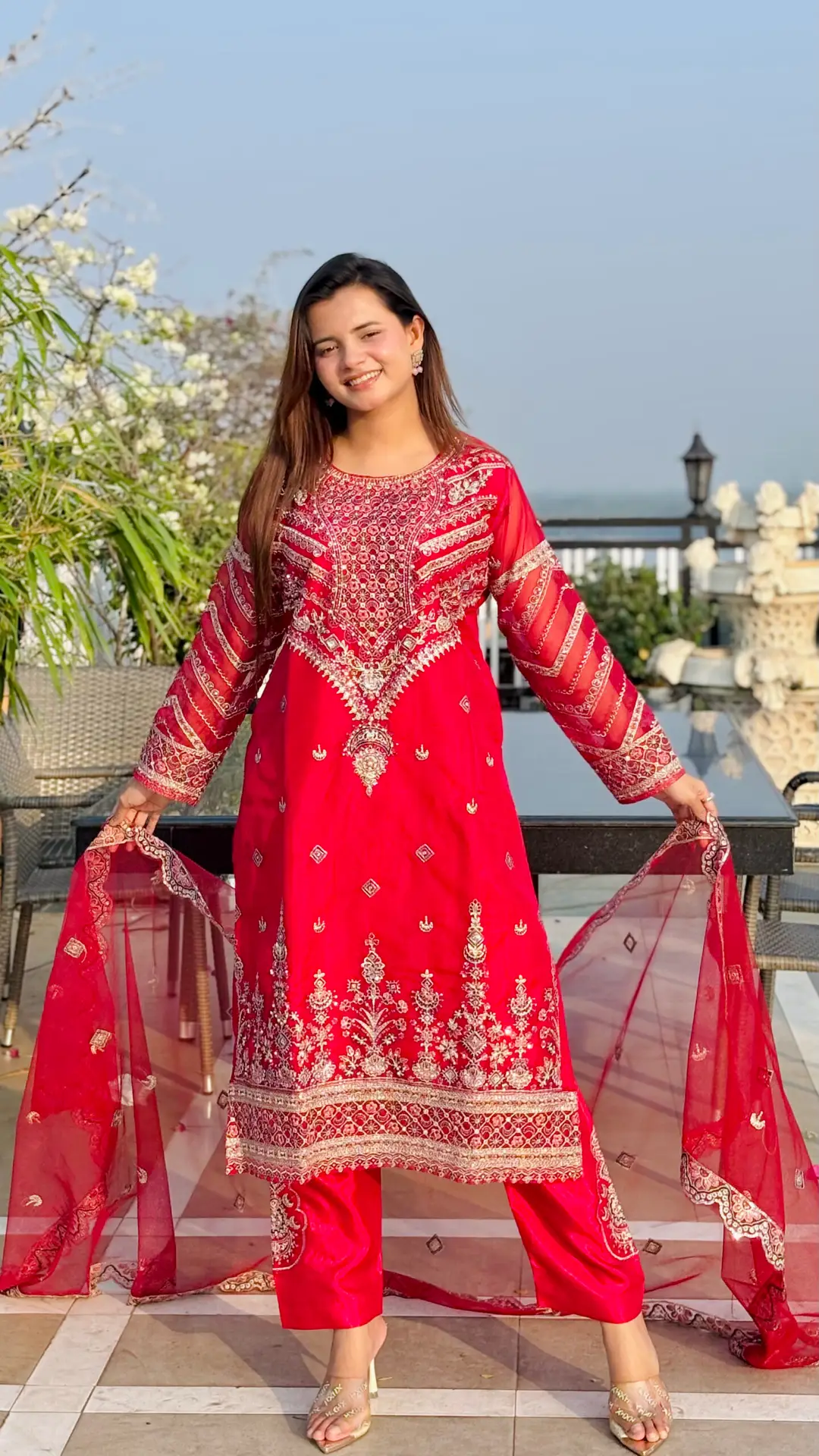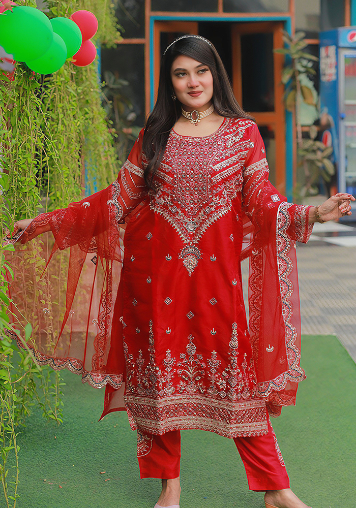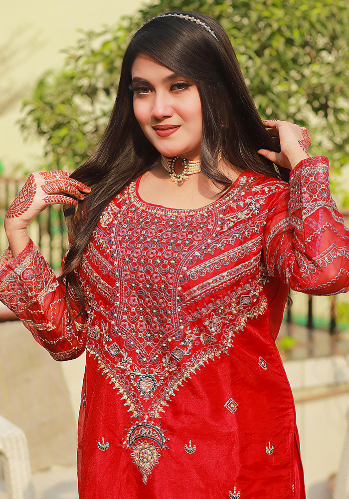 Available in two captivating colors – Red and Pink – this ensemble is perfect for festive celebrations, weddings, or special gatherings. Its unstitched nature allows you to customize the fit and style to suit your unique preferences.
