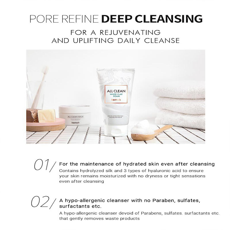 - Hydrating Formula: Despite its powerful cleansing action, the Heimish White Clay Foam maintains the skin’s natural moisture balance, preventing dryness and maintaining a supple feel.
