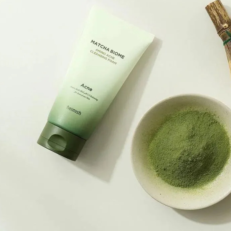 - Deep Cleansing Action: The Heimish Matcha Biome Amino Acne Cleansing Foam delivers a thorough cleanse that removes impurities, excess oil, and makeup residue. Its rich, foamy texture helps to unclog pores and prevent the buildup of acne-causing bacteria, leaving your skin feeling clean and refreshed.