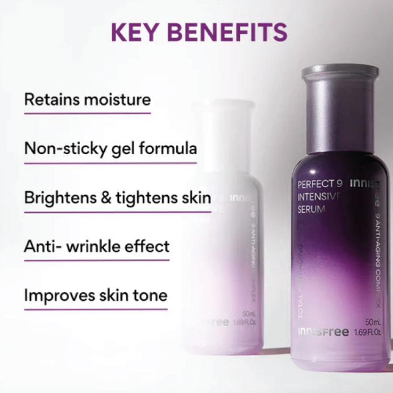 Revitalize your skin with Innisfree Perfect 9 Repair Skin EX, a powerful 200ml formula targeting nine signs of aging. Enriched with natural extracts from Jeju Island, this lightweight repair skin deeply hydrates, firms, and brightens, promoting a youthful, radiant complexion. Ideal for all skin types, it absorbs quickly and enhances your skincare routine.