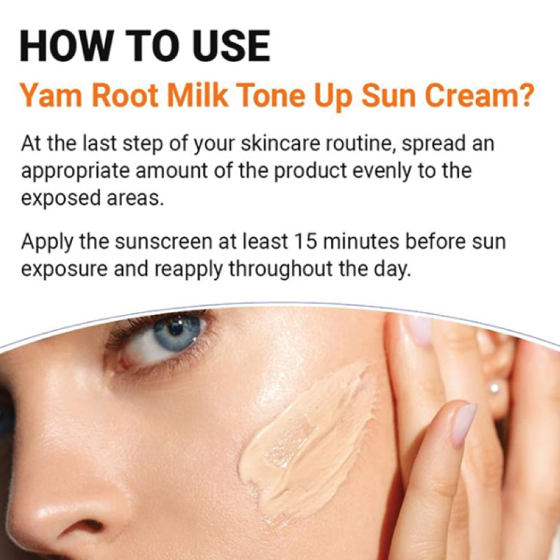 The Isntree Yam Root Milk Tone Up Sun Cream 50ml offers broad-spectrum SPF50+ PA++++ protection against UV rays while brightening and moisturizing your skin. Infused with nourishing yam root extract and milk proteins, it provides a natural tone-up effect for a luminous, even complexion. Lightweight and non-greasy, this sunscreen hydrates and soothes, making it perfect for daily use.