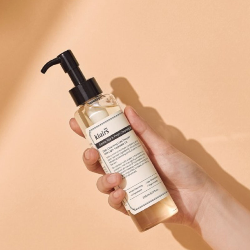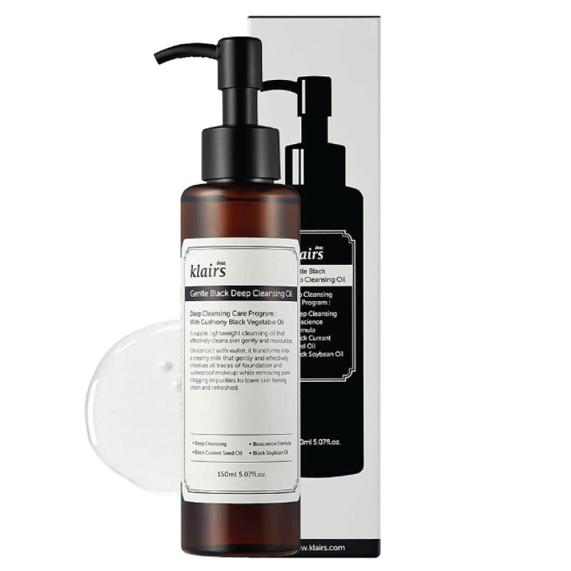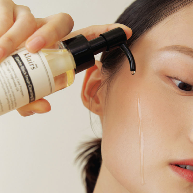 Apply a few pumps of the KLAIRS Gentle Black Deep Cleansing Oil onto dry hands and gently massage onto your dry face. The oil will emulsify with your skin’s natural oils and makeup. Rinse off with lukewarm water, followed by your favorite cleanser to achieve a double-cleansing effect.