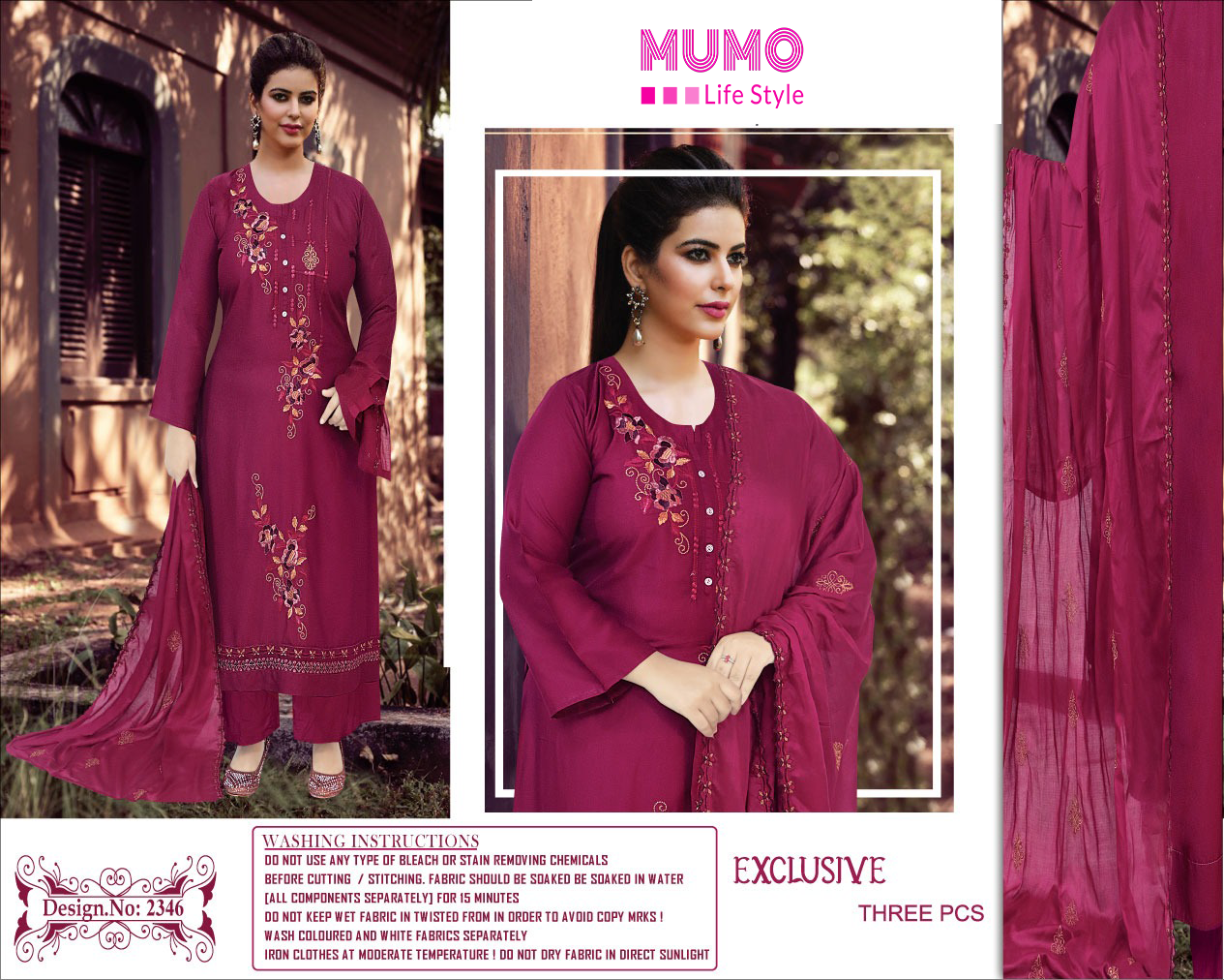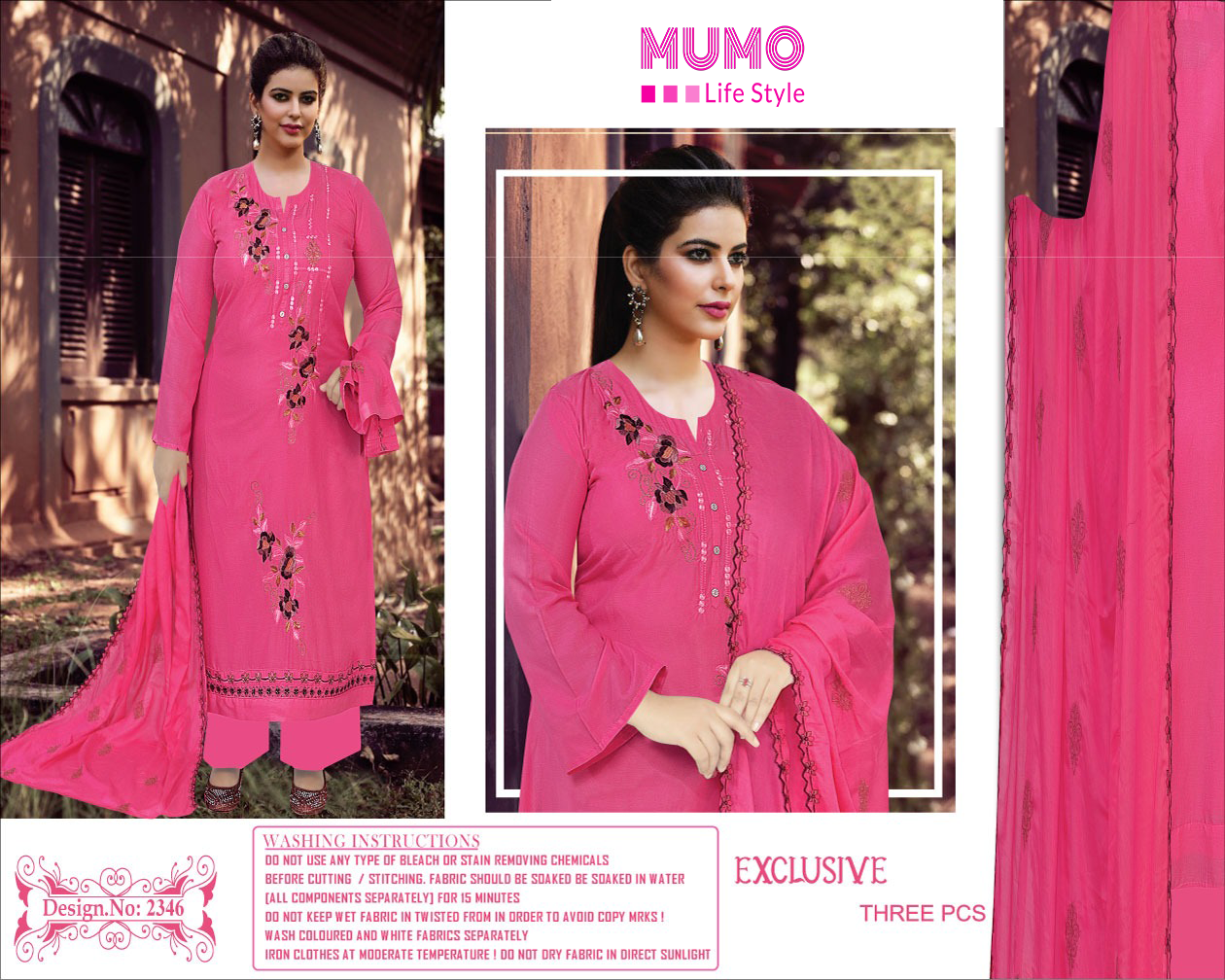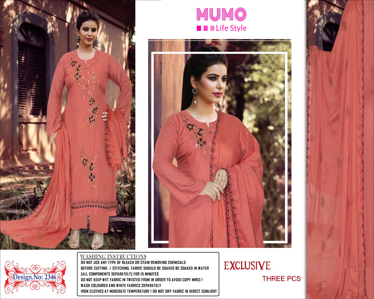 Enhance your wardrobe with the sophisticated allure of the Original Pakistani Swiss Cotton Three Piece set. Shop now at Mumolifestyle and embrace a new standard of elegance and comfort.